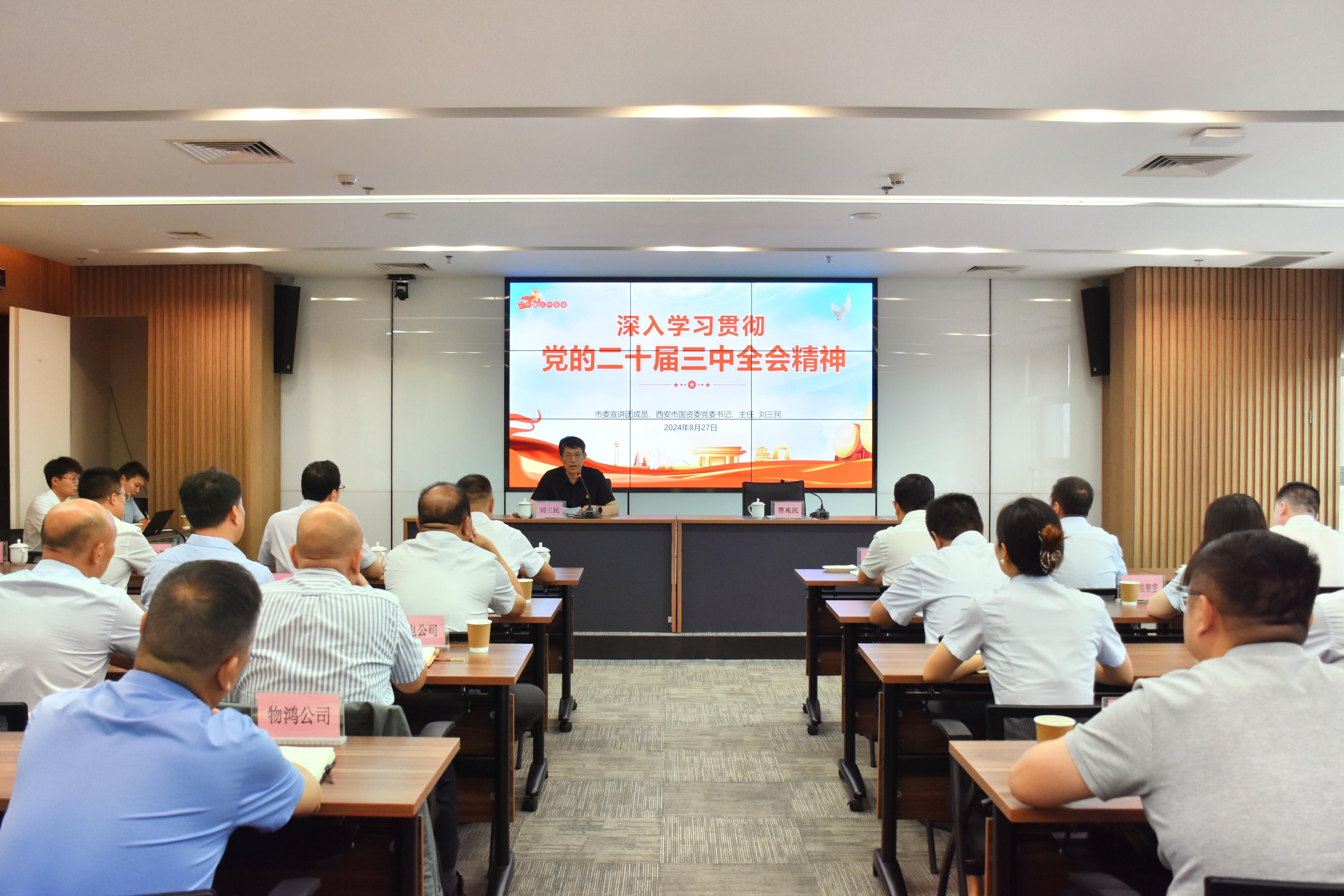 8月27日,西安商貿(mào)物流集團(tuán)舉辦學(xué)習(xí)貫徹黨的二十屆三中全會精神宣講報告會,邀請市委宣講團(tuán)成員、市國資委黨委書記、主任劉三民作宣講報告。集團(tuán)黨委書記、董事長曹兆民主持會議。