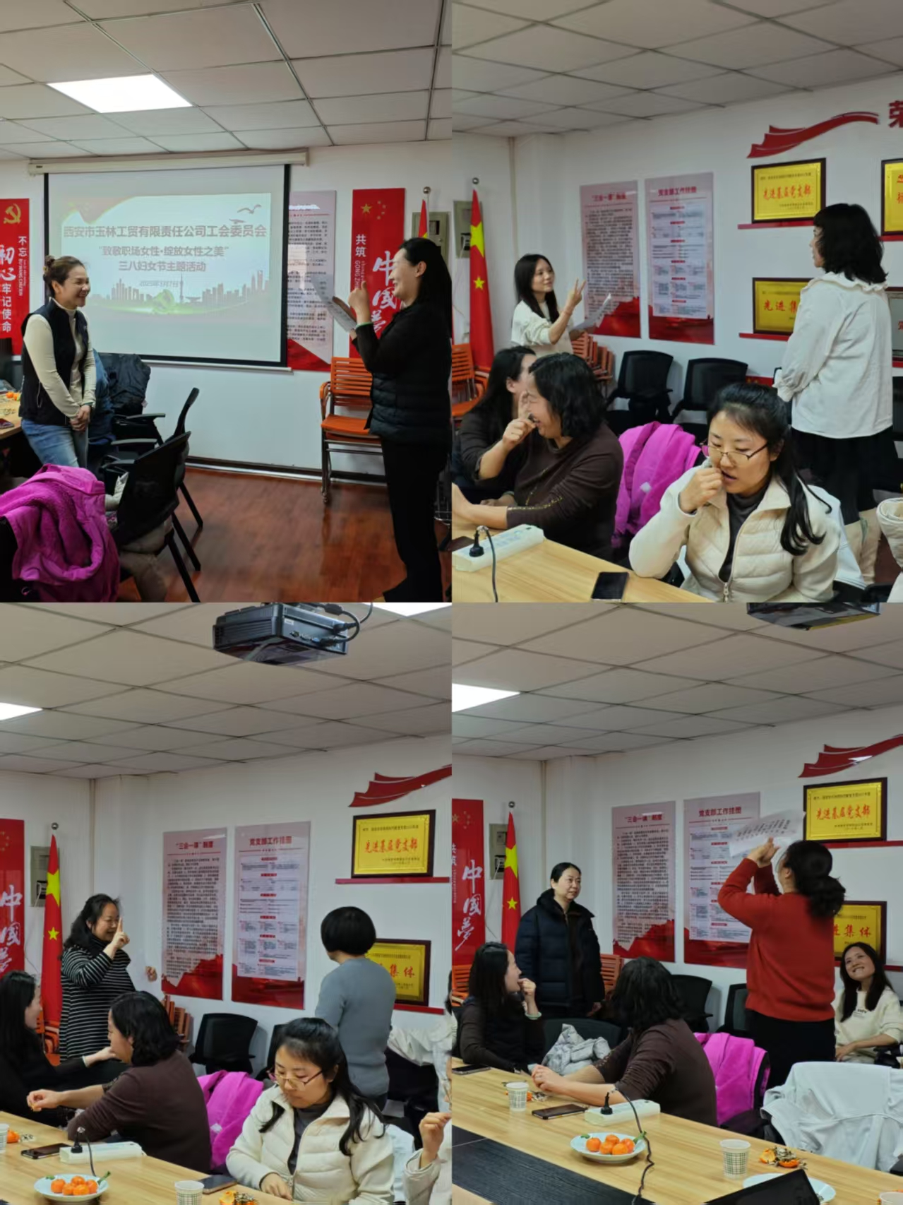 活動由茶話座談會和成語競猜等環(huán)節(jié)構(gòu)成。在成語競猜環(huán)節(jié),全體女職工兩人一組,參與“你比我猜”趣味游戲,大家通過豐富的肢體動作和生動的語言描述表達成語含義,競猜者快速反應(yīng)并給出答案,現(xiàn)場歡聲笑語不斷。