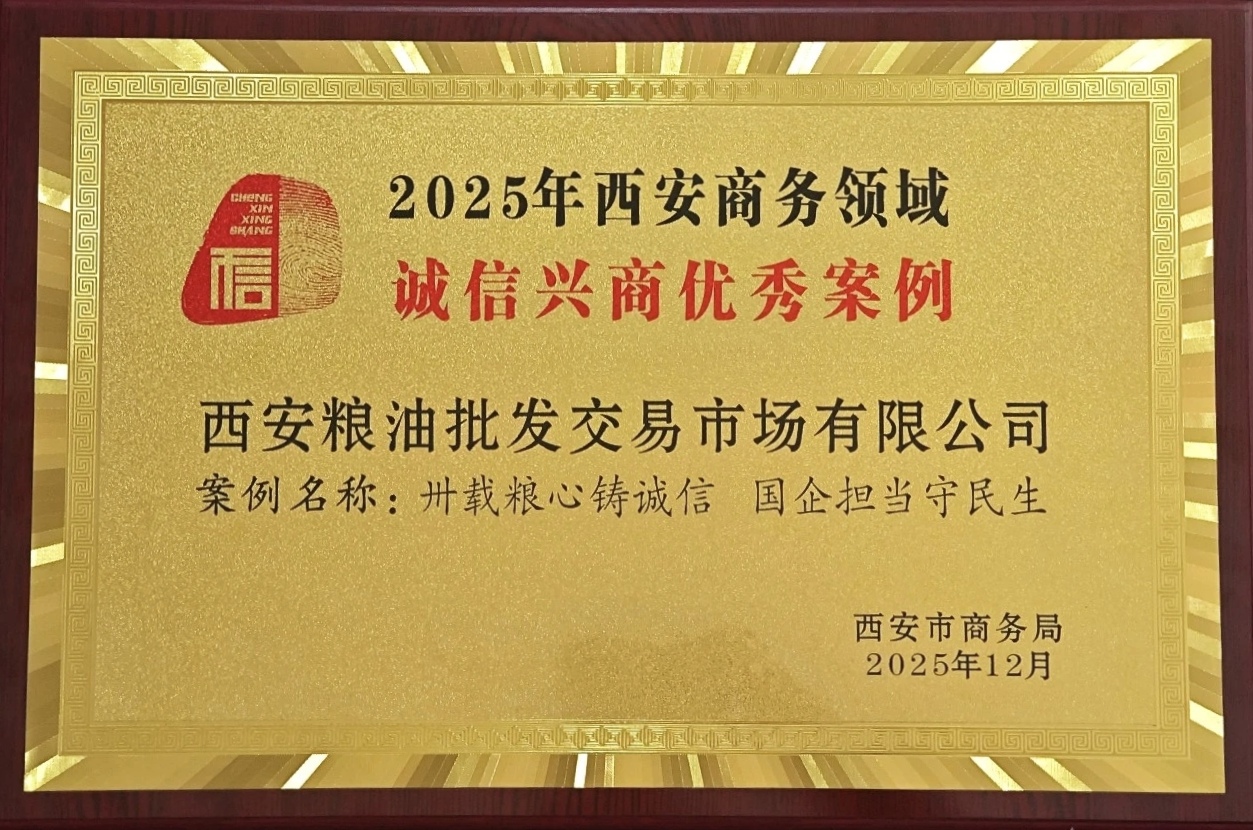 西安糧油批發(fā)交易市場有限公司榮獲2025年西安商務(wù)領(lǐng)域“誠信興商優(yōu)秀案例”